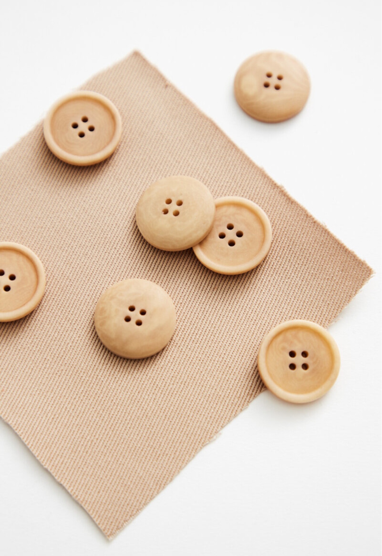 Mind the Maker – Corozo környezetbarát 20 mm széles matt gomb 4 lyukkal. Barnás bézs színű enyhe famintával.
