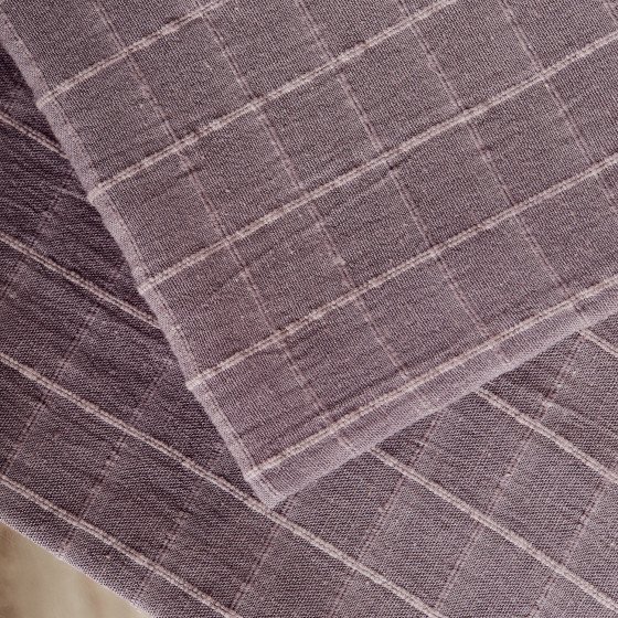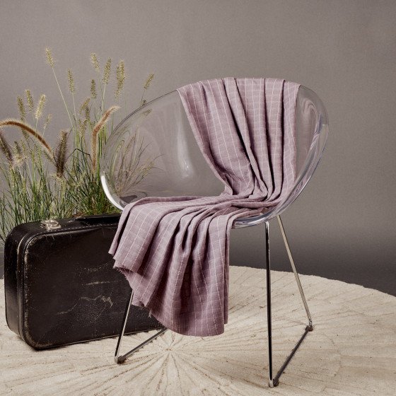 Kockás, anyagában mintás világos lila természetes keverék anyag.